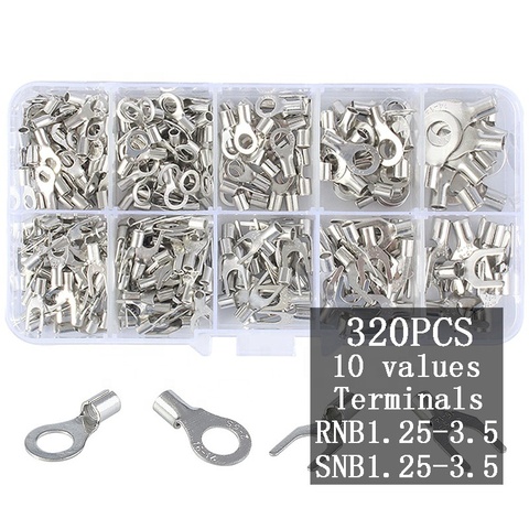 Kit surtido de terminales de latón tipo U, horquilla de anillo sin aislamiento, conector de Cable, terminales de pala de crimpado, 320 Uds.
